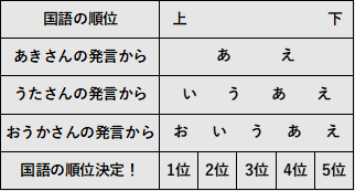 あき1位, いちろう2位, うた5位, えいじ3位, おうか4位